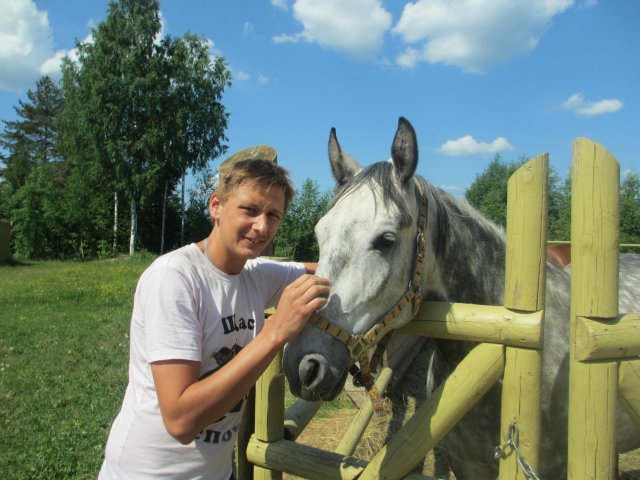 Артур Вишенков на конюшне в Мандрогах